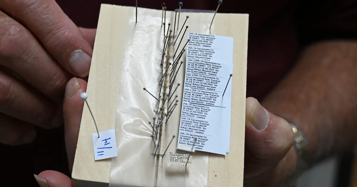 Entomologist Jeff Smith, who curates the Lepidoptera collection at the Bohart Museum of Entomology at the University of California, Davis,  has just finished spreading the wings of a moth that has a 4mm wingspan.