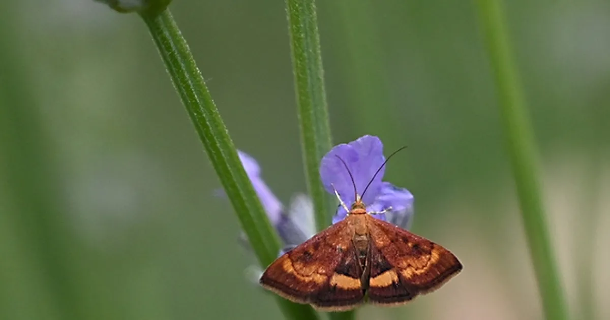 A mint moth, Pyrausta californicalis, nectaring on lavender in Vacaville, Calif. (Photo by Kathy Keatley Garvey)