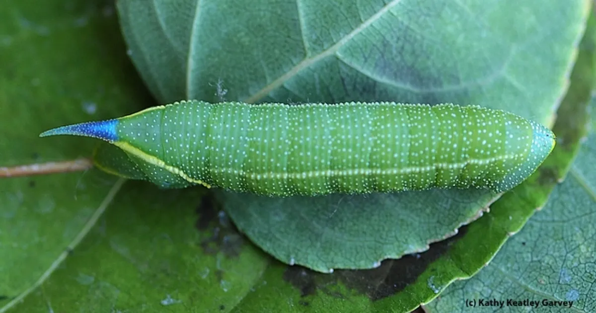 Close-up of a Smerinthus cerisyi caterpillar. (Photo by Kathy Keatley Garvey)