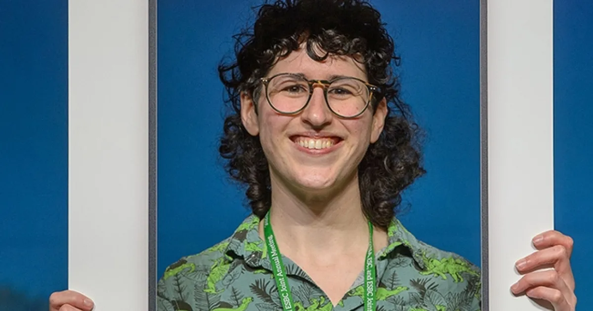 ESA honors its President's Prize winners (aka first-place winners) in the student research competitions by asking them to step behind a cardboard cut-out and smile for the camera. Voila! Suitable for framing!