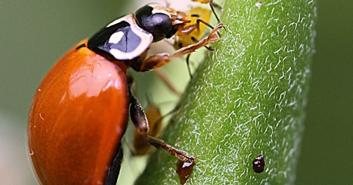 They work for free, from dawn to dusk. Aphids suck the plant juices from leaves and stems. And right back atcha, lady beetles suck the aphids.