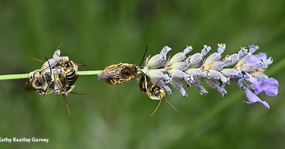 But as dusk settles, there they are, the boys sleeping together in what Thorp called "The Boys' Night Out." The females return to their nests and the males "snuggle" together on lavender, sunflowers or whatever blossom suits them.