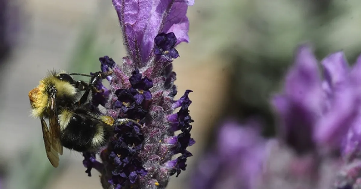 As for the bumble bee foraging on our Spanish lavender, it eventually bumbled off with that heavy load, taking flight like a weighted Spruce Goose.