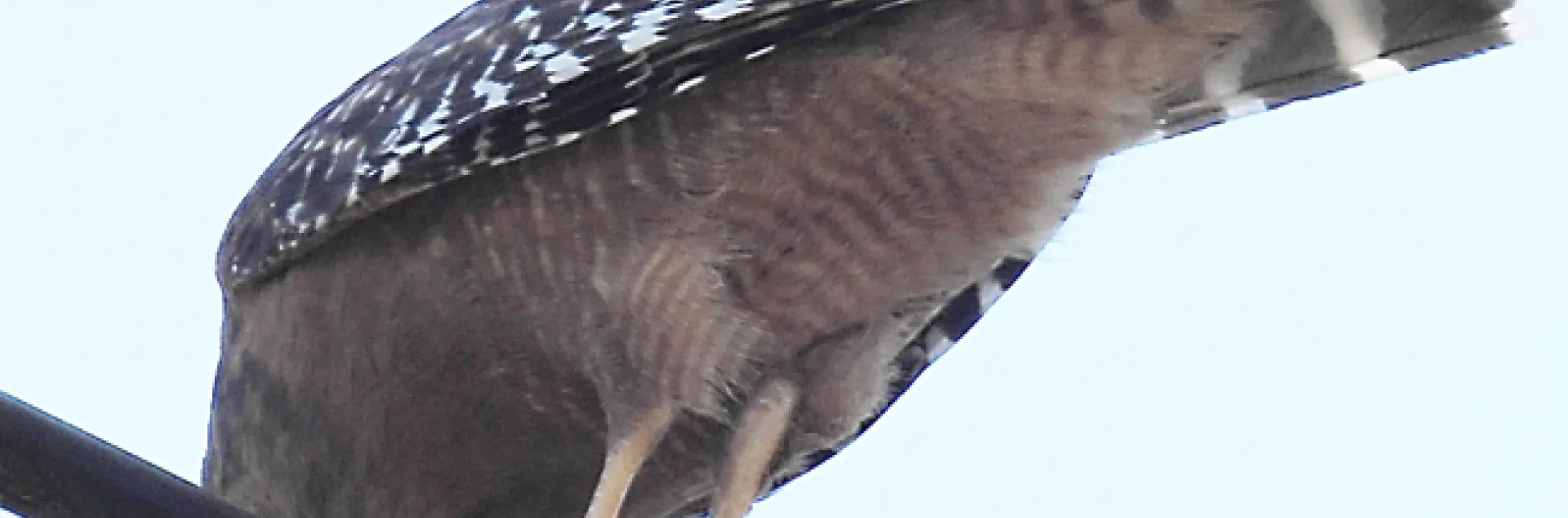 Red-shouldered hawk devouring what appears to be a praying mantis. It caught the insect in the Vacaville Museum and then perched on a telephone line to eat it. (Photo by Kathy Keatley Garvey)