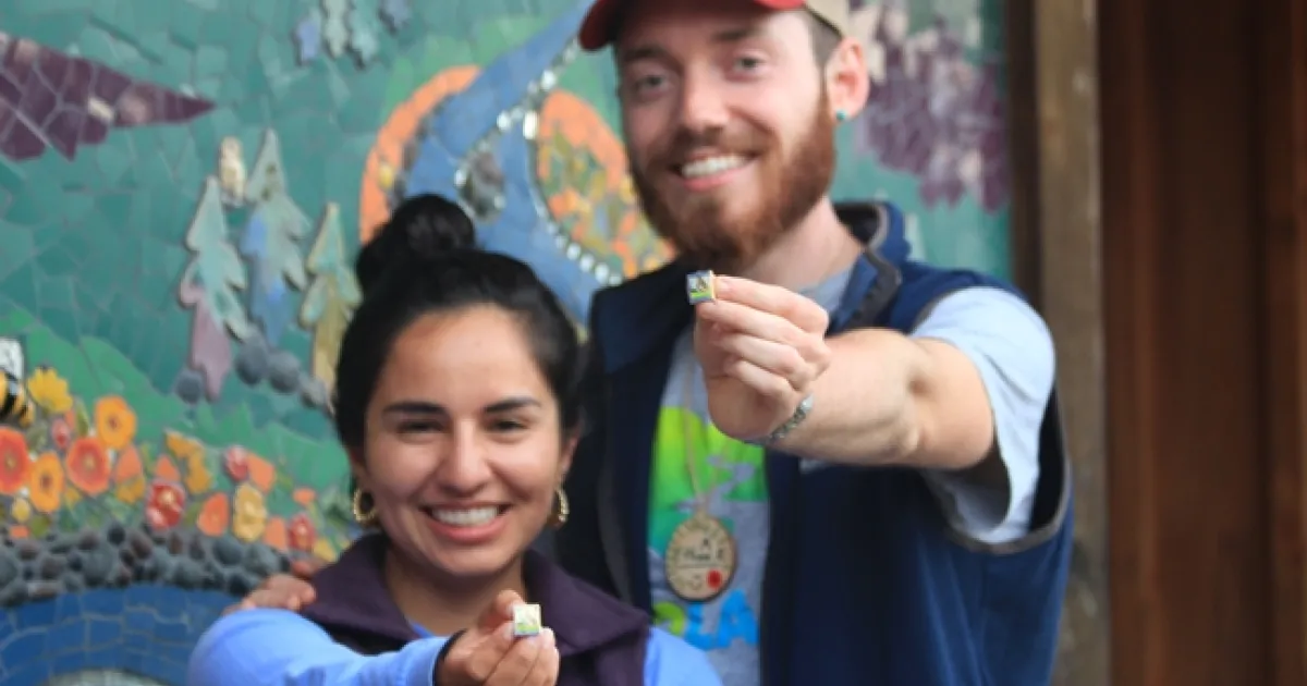 2019 Pasadena City College graduates Ethan and Elexis show off their California Naturalist pins.