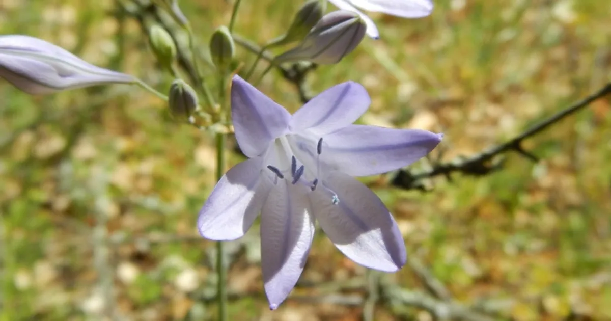 These flowers stand tall above the already-browning grass of the California Coast Range and Sierra Foothills. With their many bright, trumpet-like flowers atop a long stem, you can definitely get the spear-like impression from its namesake. The genus Triteleia itself has an interesting etymology: it is derived from the Greek tri, “three” and teleios, “perfect,” with the floral parts being in threes. But who is Ithuriel, and what is so special about their spear? Ithuriel was an angel in Milton's Paradise Lost who found Satan squatting like a toad, close at the ear of Eve, and transformed him by a touch of his spear to his proper form (Read more).
