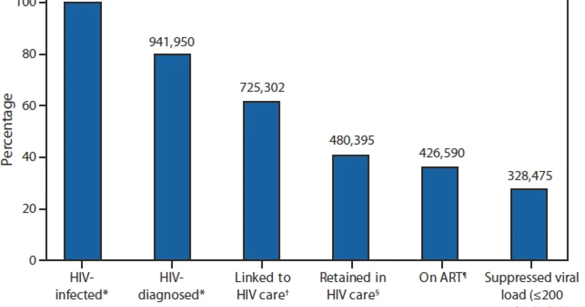 Number and percentage of HIV-infected persons engaged in selected stages of the continuum of HIV care — United States