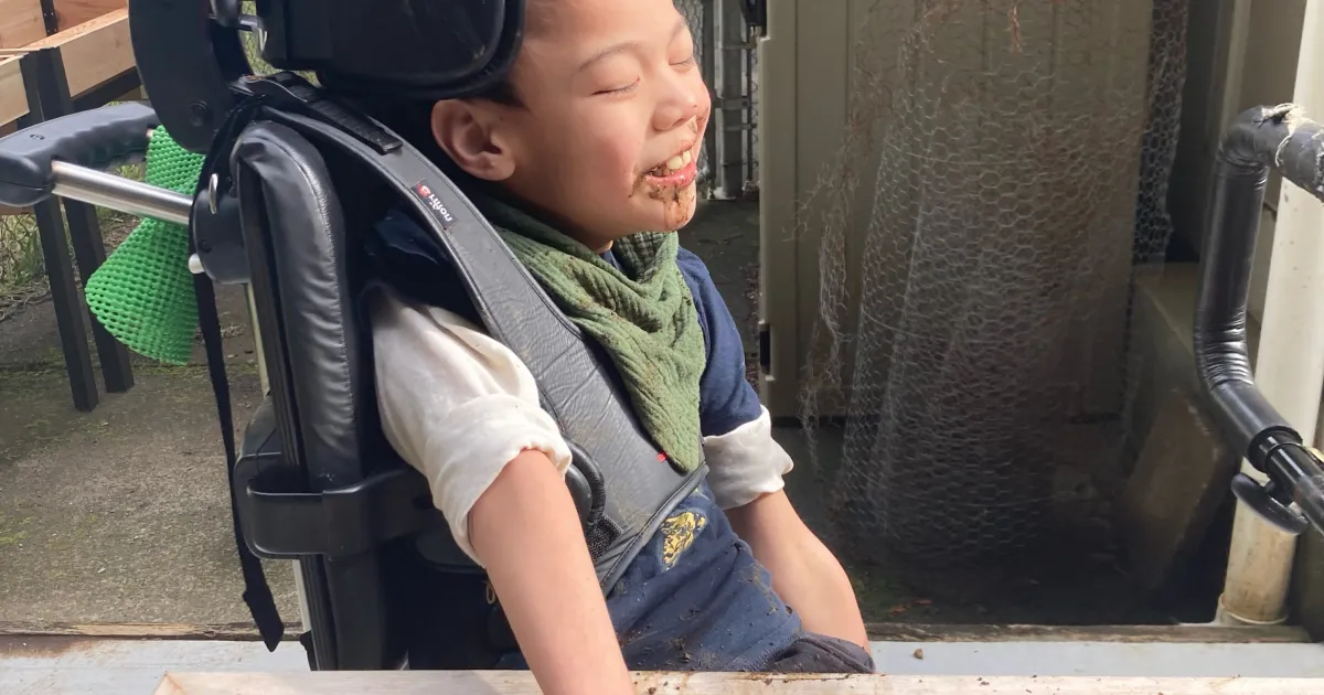 On a warm day, a child was playing in the dirt at school. The special thing about this dirt is that it is raised up to meet him where he is. His smile says it all. How wonderful that gardening can be accessible to everyone.