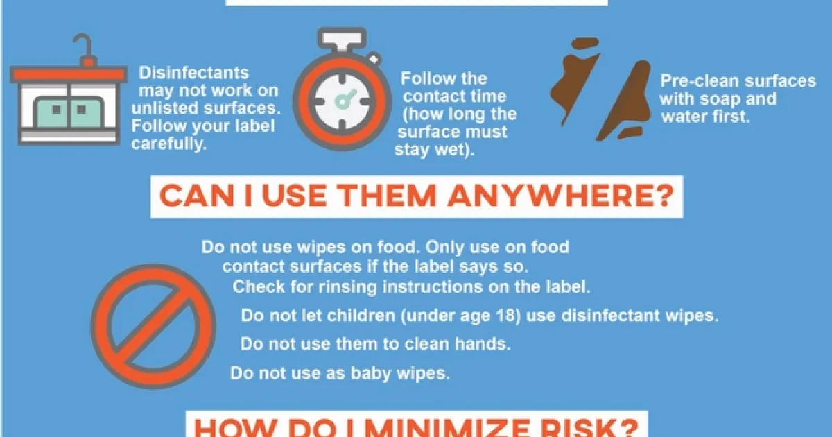 Many people have increased their use of disinfectants and sanitizers due to the COVID-19 crisis. It is important to use these products correctly to ensure they are effective and to protect one's health. See the infograph below from the National Pesticide Information Center about how to safely use disinfectants.