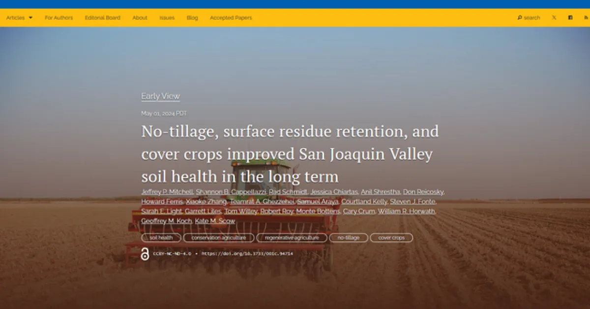 Findings from twenty years of soil health research in Five Points, CA have been published in the University of California's California Agriculture peer-reviewed journal's May 1, 2024 issue. https://doi.org/10.3733/001c.94714.