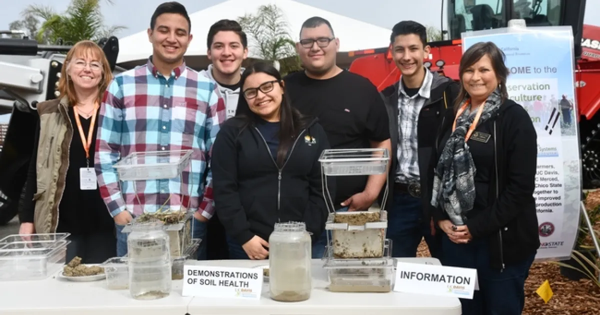 CASI once again paired with the California NRCS to host an outdoor display and information site at the 2019 World Ag Expo in Tulare, CA from February 12th through the 14th. This year's joint sponsorship of the display presence was by far our best year ever as measured by the sheer number of passersby we attracted and the total number of live soil health demonstrations that we provided. The CASI / NRCS educational event was coordinated by Sheryl Feit, NRCS Associate State Soil Scientist in the Davis, CA State Office, along with Brook Gale of the Fresno Area Office, Mira Dick, DC of the Merced Office, Caleb, Conservation Planner in Kern County, and Javier, an NRCS Earth Intern also in the Kern County office. Jeff Mitchell was also on hand from UC's CASI Center and Dan Munk and Scott Stoddard, also UCCE CASI members, contributed to our Workgroup's presence at the UC ANR site at the Tulare show.