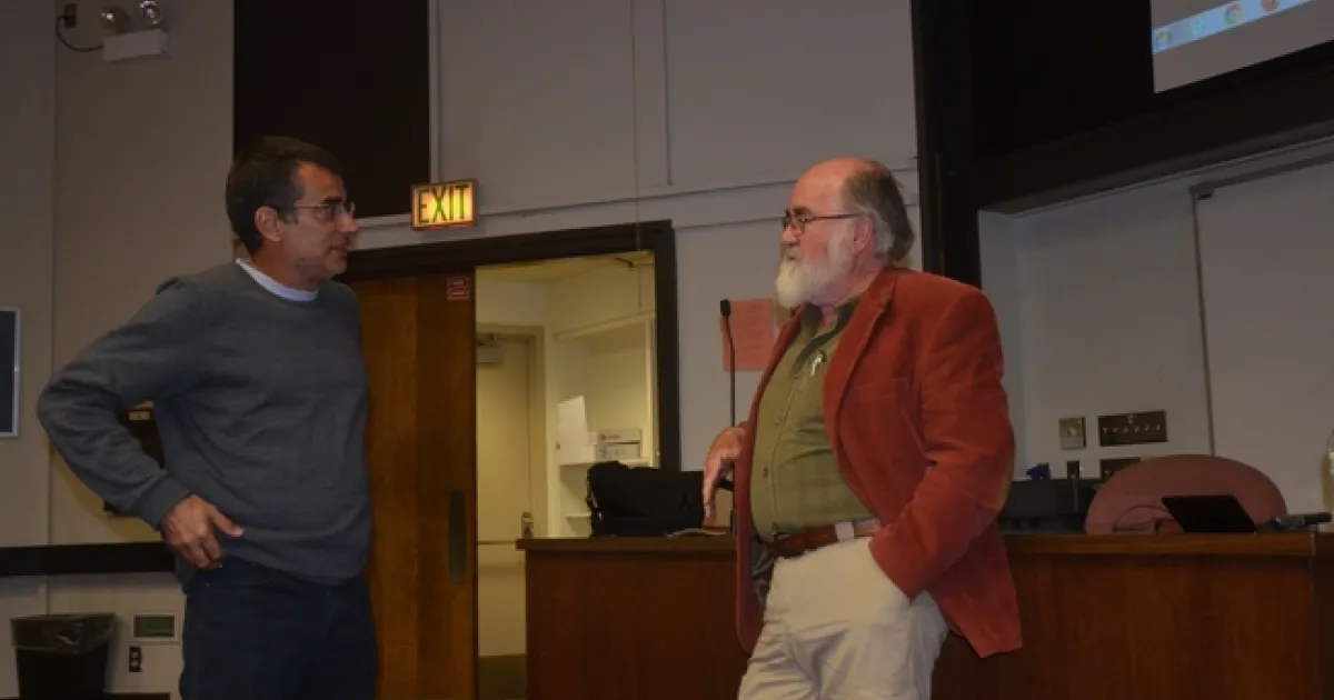 Roberto Botelho (left), Brazilian conservation agriculture researcher from Sao Paolo state and Angus Wright, Emeritus Professor of Environmental Studies at California State University, Sacramento at seminar presentation of Wright at Fresno City College, February 22, 2018The CASI Center has had the honor of hosting Brazilian conservation agriculture researcher from Sao Paolo state, Roberto Botelho, during February 2018 and one of the highlights of the visit was a meeting with Dr. Angus Wright, distinguished historian and scholar at California State University, Sacramento, where he and Wes Jackson (now of the Land Institute in Salina, KS) created the Environmental Studies Department which was the first of its kind in the US. Dr. Wright spoke to a large audience on “Food, Forests, and Education” and provided very inspiring encouragement to folks on the importance of ‘loving life' and taking on challenges with open, prepared, and flexible minds. He wove several stories of people he has known who themselves were open to meeting new and unexpected challenges and encouraged the young people who were in the audience to think broadly and creatively about their education and the work that they will contribute. He has done extensive work in Brazil and was able to speak with Botelho about it.