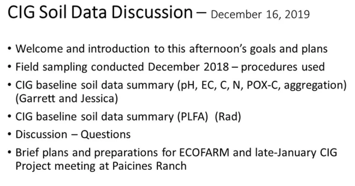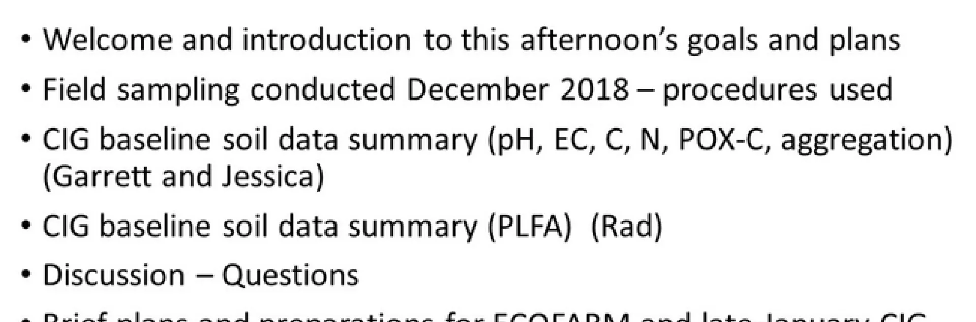 About twenty farmers and University research partners who have been involved with the CIG Project, Securing the future of highly productive organic no-till vegetable production systems in California (CA), that started in 2018, took part in a two-hour televideo conference discussion that looked at initial findings from soil sampling that was done at the end of 2018 at all participating farm sites. The discussion provided an opportunity for project partners to look at and discuss the significance of a whole suite of soil property determinations including pH, EC, carbon, aggregation, color, and phospholipid fatty acids. A summary of the initial data and results of these baseline samplings is available here. The next round of project farm sampling will be conducted at the end of 2020.