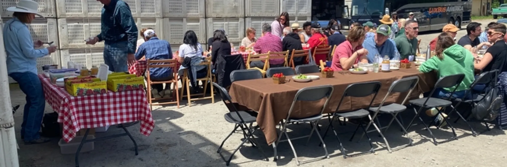 About 53 folks who were part of the GOOGLE Food Lab out of Mountain View, CA were treated to a half-day walking tour and lunch at the beautiful organic farm of Phil and Katherine just east of Hollister, CA on April 25, 2023. The GOOGLE Food Lab describes itself as "an invitation-only community of food leaders, change agents and visionaries, creating positive change across food systems." Pinnacle Organically Grown Produce was chosen to host part of the group's 2023 tour because of the farm's long-term leadership and pioneering progress on organic vegetable production systems that use a wide range of beneficial practices that contribute to the farm's diversity, soil health, employee welfare, and economic success. The multitude of the Fosters' practices including use of 'single-line' cover crops to conserve water, on-farm composting and routine field application of compost, hedgerows, and reduced disturbance tillage, were on display during the two-hour walking tours that Phil Foster along with Jeff Mitchell took the visitors on. The tour was coordinated by Eva Antczak of GOOGLE following an earlier visit to the farm by Michiel Bakker, GOOGLE's Vice President of Global Workplace Programs in 2022.