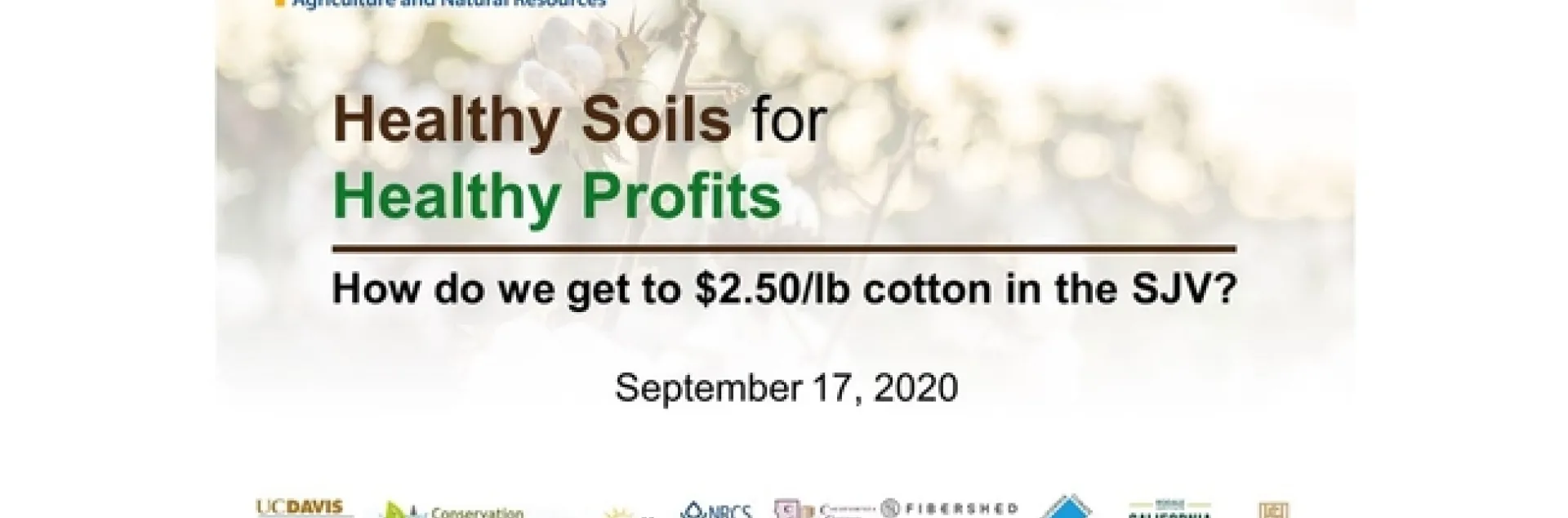 A video transcript of the Healthy Soils Healthy Profits - How do we get to $2.50/lb cotton in the SJV? webinar that was held on September 17, 2020 is now available at You Tube at