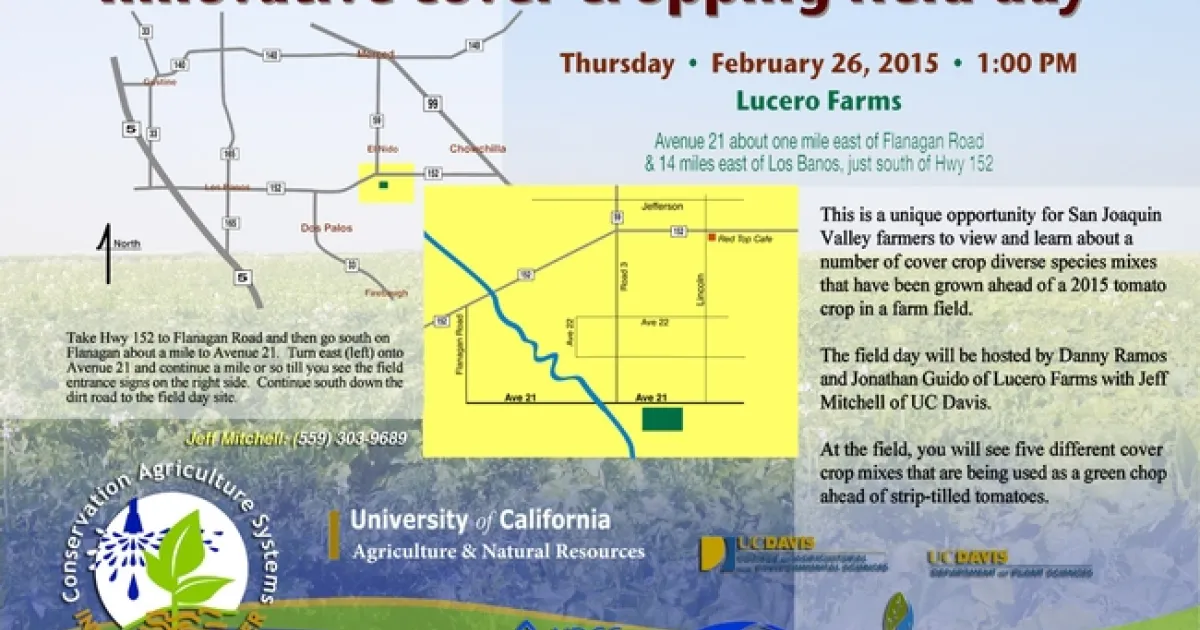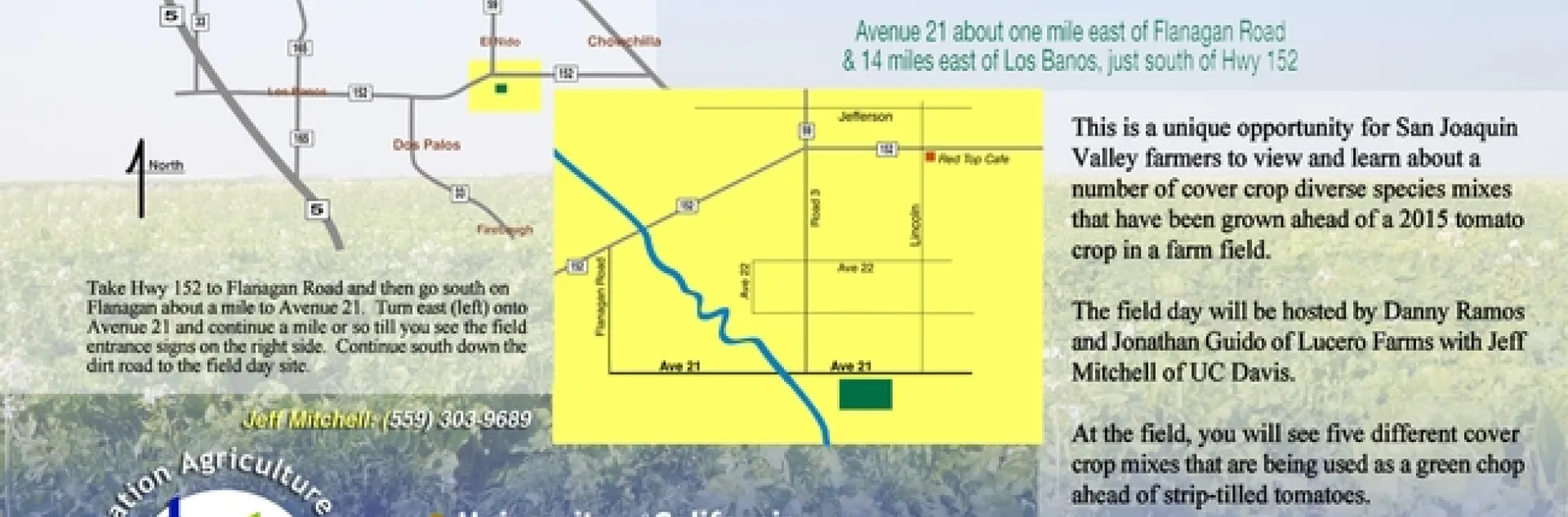 CASI invites you to take part in a very interesting field educational event this Thursday, February 26th, at one of the fields of Danny Ramos and Jonathan Guido of Lucero Farms just south of Hwy 152 about midway between Los Banos and Chowchilla. Take 152 from either the east or west and then take Flanagan Road south about a mile. From there, turn east (left) onto Avenue 21 and follow this road about a mile or so till you see our sign on the right side of the road. Take the dirt road south about a couple hundred yards to the cover crop field.
