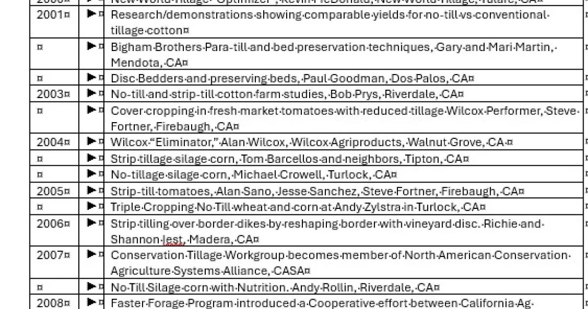 A detailed timeline of advances in tillage management in California has been prepared by a large group of CASI partners for possible publication in an upcoming article about the history of conservation agriculture in the state. This timeline includes achievements dating back to 1957 and through today. It is available here and if and when the article is published, we will post a link to the full report as soon as possible.