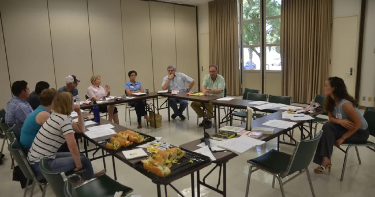 A group of UC KARE researchers and UCCE Fresno and Madera County Advisors took part in a two-hour workshop on science communication and presentation skills at the UC KARE on Friday, August 25th. The group included Phoebe Gordon and Rebecca Ozeran of Madera County, Shannon Mueller and George Zhang of Fresno County, Lori Berger, Andreas Westphal, Jeff Dahlberg, Themis Michailides, and Jeff Mitchell of UC KARE, Aldo Garcia of Fresno State, and key meeting presenter, Jessica Chiartas, a PhD soil science student at UC Davis. With introductory information on some of the current thinking and ideas of effective, engaged and connected communication that was provided by Mitchell and Chiartas, the group worked through a number of improvisation and role play exercises aimed at improving the way in which we communicate to the various people and groups that we interact with in our extension education work. In addition, the group solidified a commitment to continue to meet perhaps three or four times annually to form a peer support group aimed at continuing to learn and to explore opportunities for improving our communication skills. Though it was but a small part of the workshop program, participants participated in a pre-workshop video interview about their work and research programs. The video clips from these pre-workshop exercise are archived at the You Tube link https://youtu.be/owhycgHhJ0U Our intent is to go back to folks who participated and conduct a follow-up video interview that might allow everyone to see if and how they've included ideas and techniques that were shared in the workshop into their ongoing work and communication. We look forward to adding folks to strengthen the peer support communication group. If you're interested, let Jeff Mitchell know at jpmitchell@ucdavis.edu or 559-303-9689. We obviously do not have all the answers, but are keen and curious, I think, in learning more and in improving what we do.
