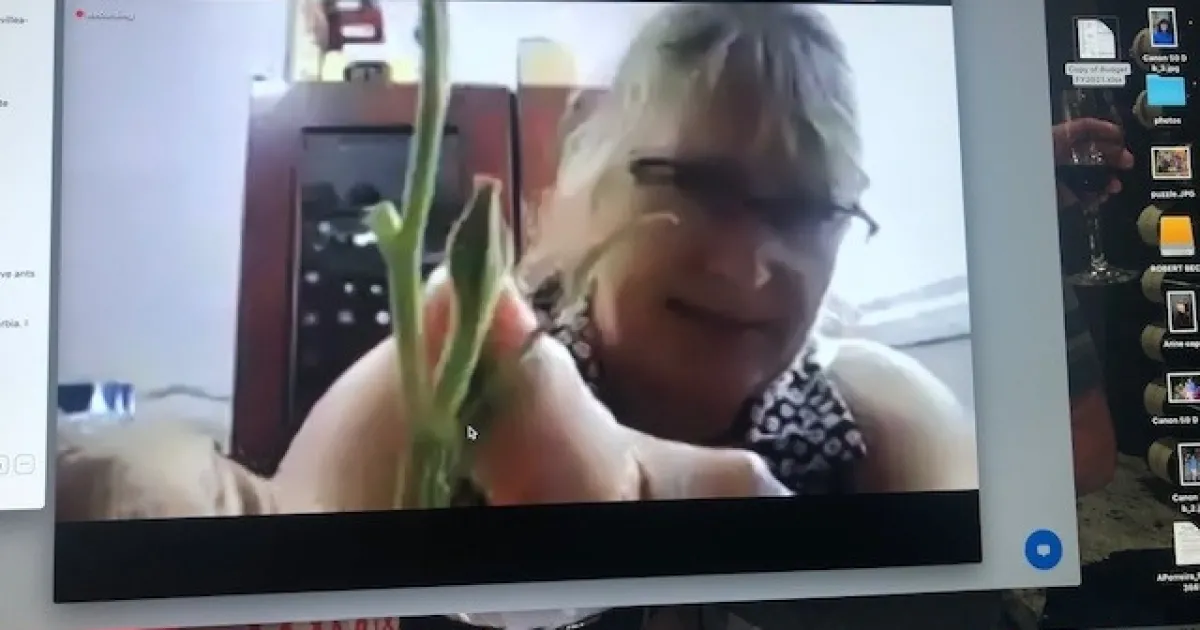 UC Master Gardener volunteer of San Diego County, Kriss Blumeyer, hosting a flower lab Zoom training. Photo: Scott Parker