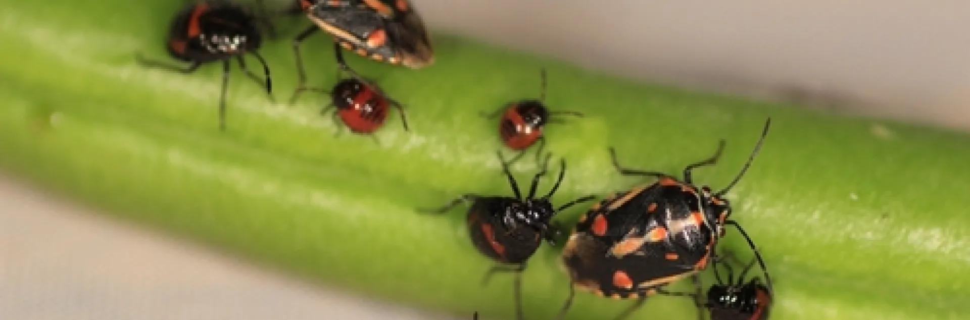 Bagrada bug adults and nymphs feeding on a green bean. (Photo by Surendra Dara)