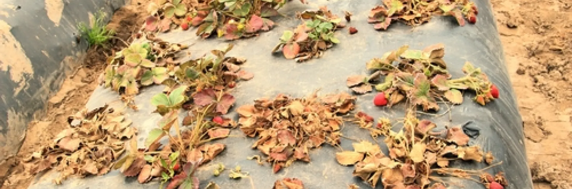 Dead and dying strawberry plants with pallidosis-related decline in Santa Maria.