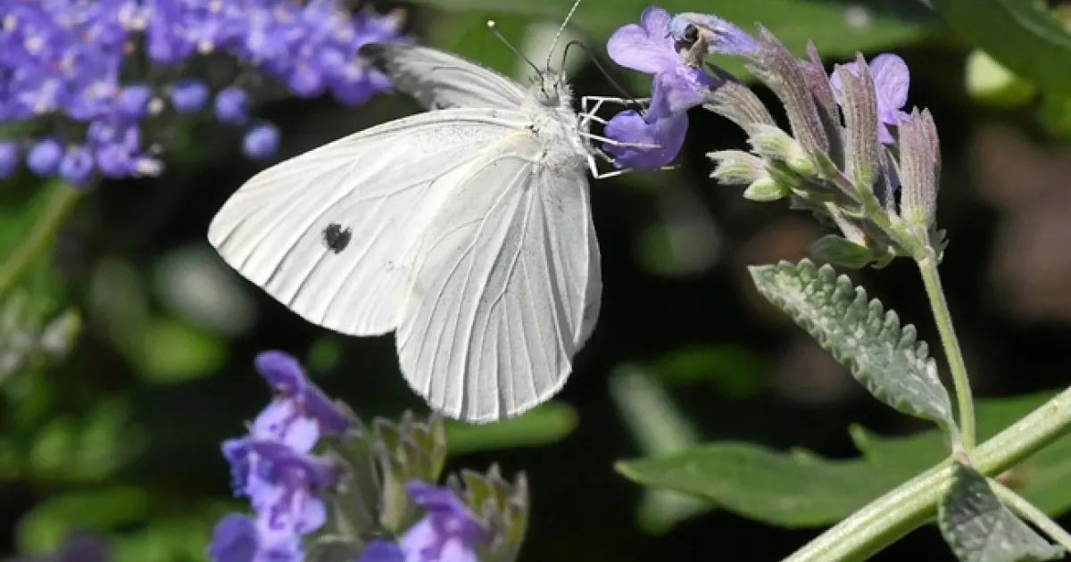 He spotted the butterfly, Pieris rapae, basking on a malva leaf at 11:16 a.m., but it took off before he could net it.