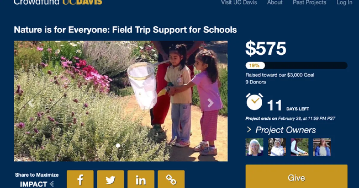 All contributions to support the fundraising project are welcome and appreciated. Access the CrowdFund site at https://crowdfund.ucdavis.edu/project/29773. As of 11 a.m. today (Feb. 17), donations amounted to $575. The project ends at 12:59 p.m., Feb. 28.