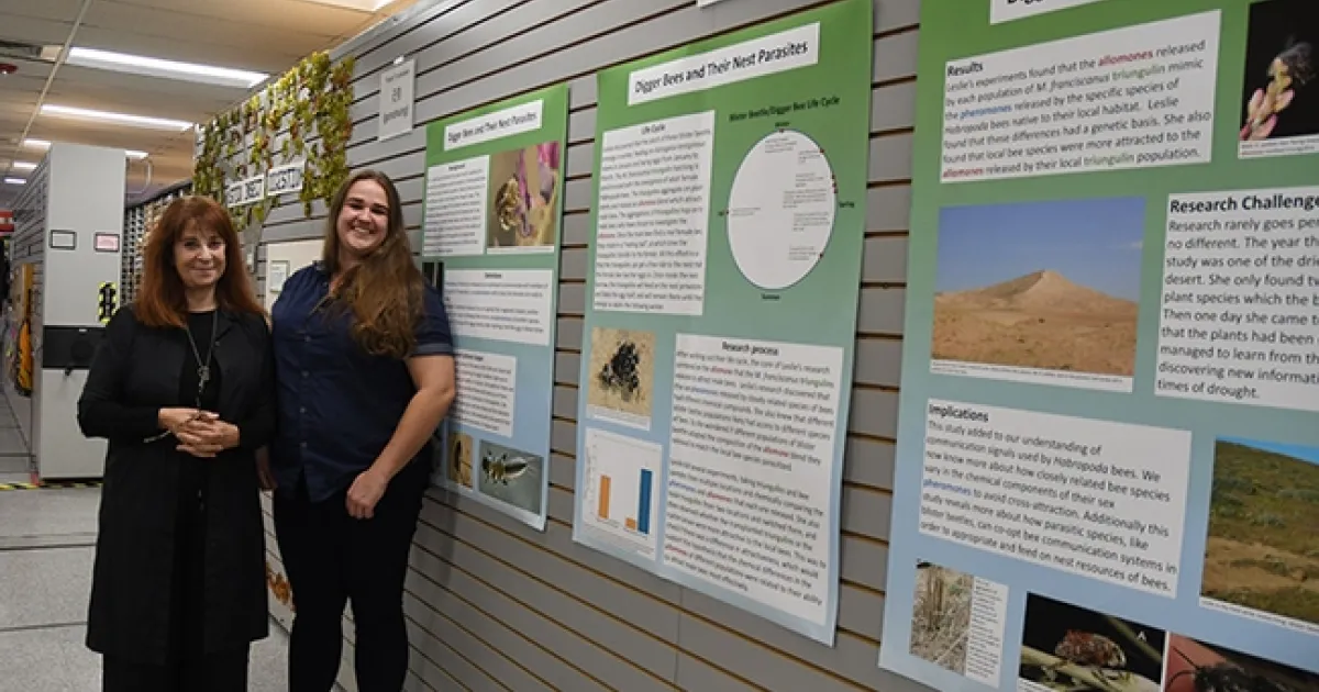 The Bohart Museum of Entomology is showcasing the innovative research of UC Davis evolutionary ecologist Leslie Saul-Gershenz, who studies how blister beetle nest parasites mimic the sex pheromone of digger bees.