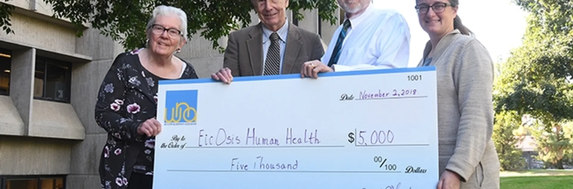 Anderson and WNA treasurer Darrell O'Sullivan, a former lab manager at the UC Davis Medical Center, recently visited the Hammock lab to present a $5000 check from the association to EicOsis, the Davis company that Hammock founded to move inhibitors of the soluble epoxide hydrolase into human clinical trials.