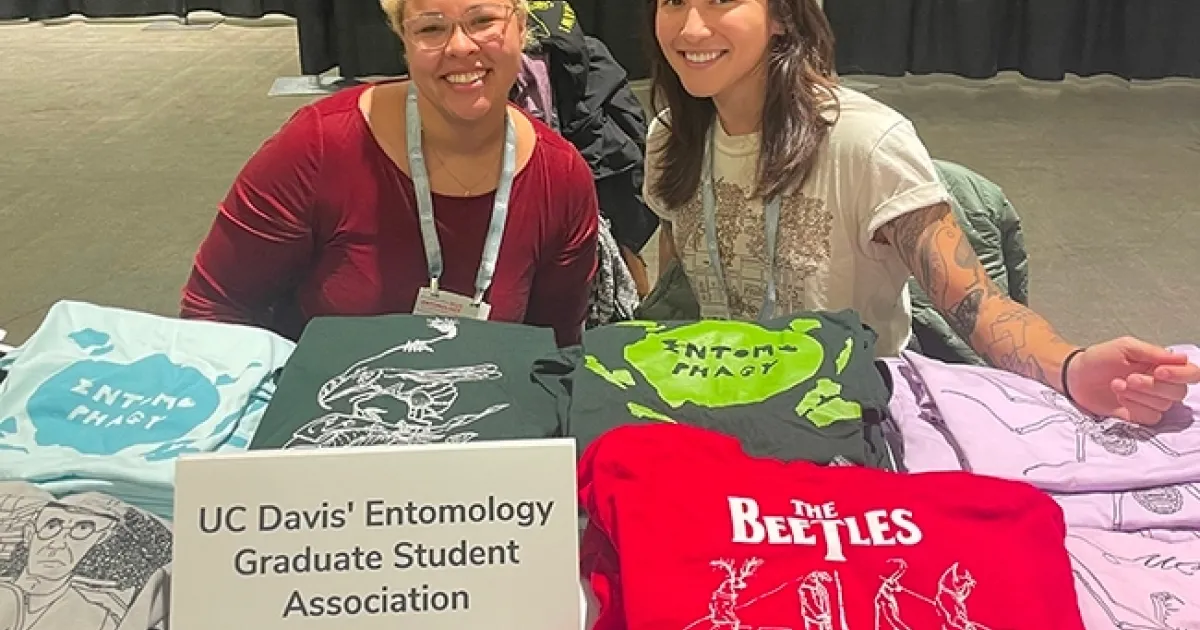 EGSA members design insect and arachnid-themed T-shirts that climb, crawl, jump, roll, flutter, buzz, fly or otherwise position themselves on EGSA T-shirts. They can be viewed and ordered online at https://mkt.com/UCDavisEntGrad/.