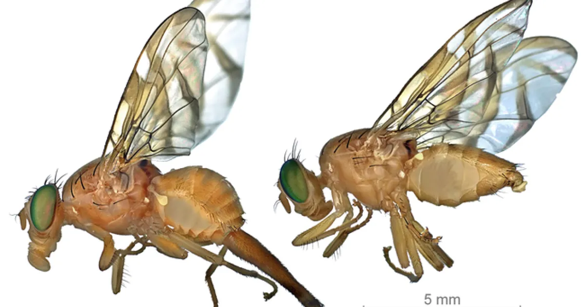 The Mexican fruit fly, Anastrepha ludens, is very serious pest of various fruits, particularly citrus and mango, in Mexico and Central America. "The USDA estimates that the Mexfly causes $1.44 billion worth of damage in a 5-year time span, mostly to citrus farms," according to Wikipedia. "They are frequently designated as an invasive species in Southern California and Arizona and pose a serious threat to Florida's grapefruit agriculture."