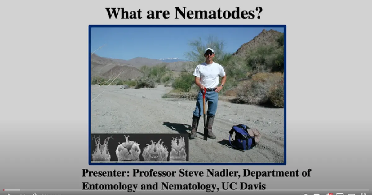 - "All About Nematodes," an 11-minute YouTube video by Steve Nadler, professor and chair of the UC Davis Department of Entomology and Nematology." He explains what they are and discusses the diversity and research involved. See https://youtu.be/3fhv-P_O8I8.