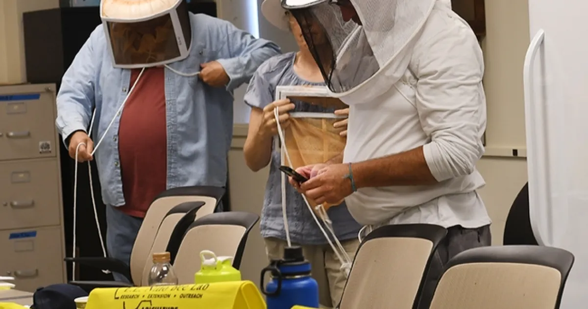 The 23 participants in the short course, "Planning Ahead for Your First Hives," gathered at the Harry H. Laidlaw Jr. Honey Bee Research Facility on Bee Biology Road to spend a Saturday learning all about bees via lectures and hands-on activities.