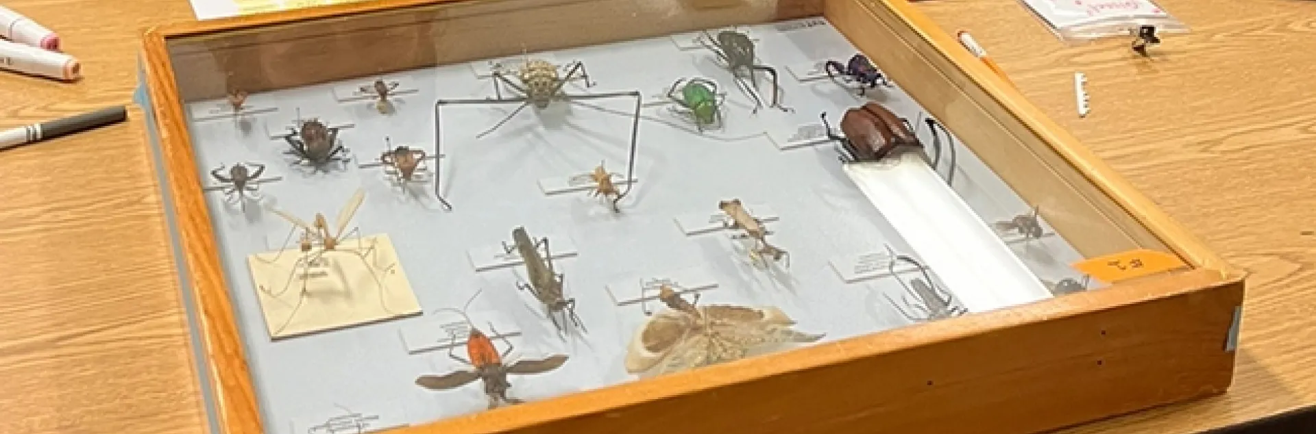 Each student also "invented" a bug, pinned it with toothpicks, and labeled it. Edwards and Lippey also shared insect collections borrowed from the Bohart Museum of Entomology, home of eight million insect specimens.