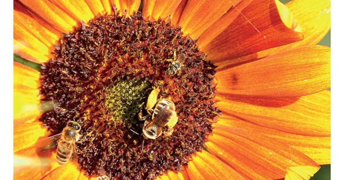 Cover Photo. The cover photo, by Kathy Keatley Garvey, communications specialist, UC Davis Department of Entomology and Nematology, shows several species of bees on a sunflower, Helianthus sp. They include a honeybee (Apis mellifera), sunflower bee (Svastra obliqua), and two sweat bees (Halictus tripartitus and Halictus ligatus), as identified by Professor Williams, a pollinator ecologist.