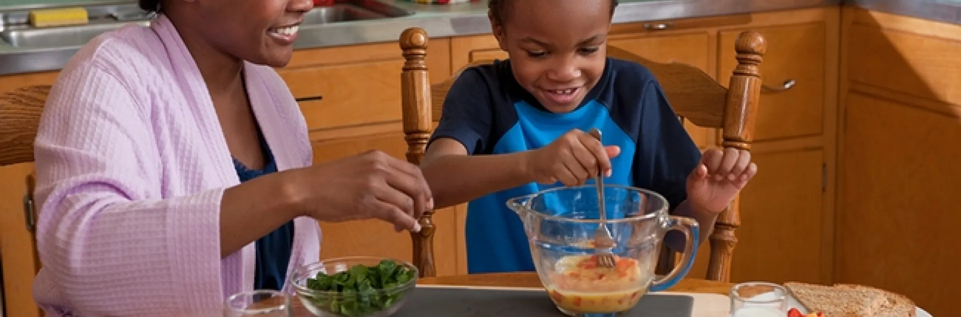- Use a smaller bowl for the child to mix or measure ingredients in before it is poured into the larger recipe bowl.