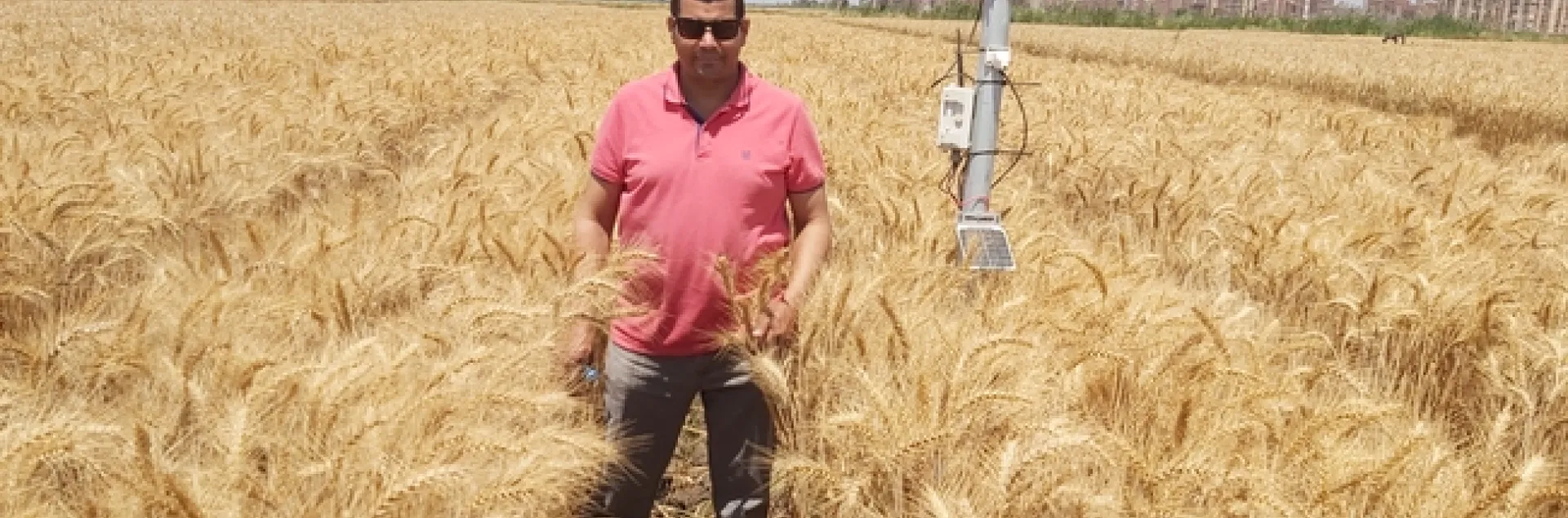 Atef Swelam stands in a raised-bed wheat field in the Nile Delta of Egypt