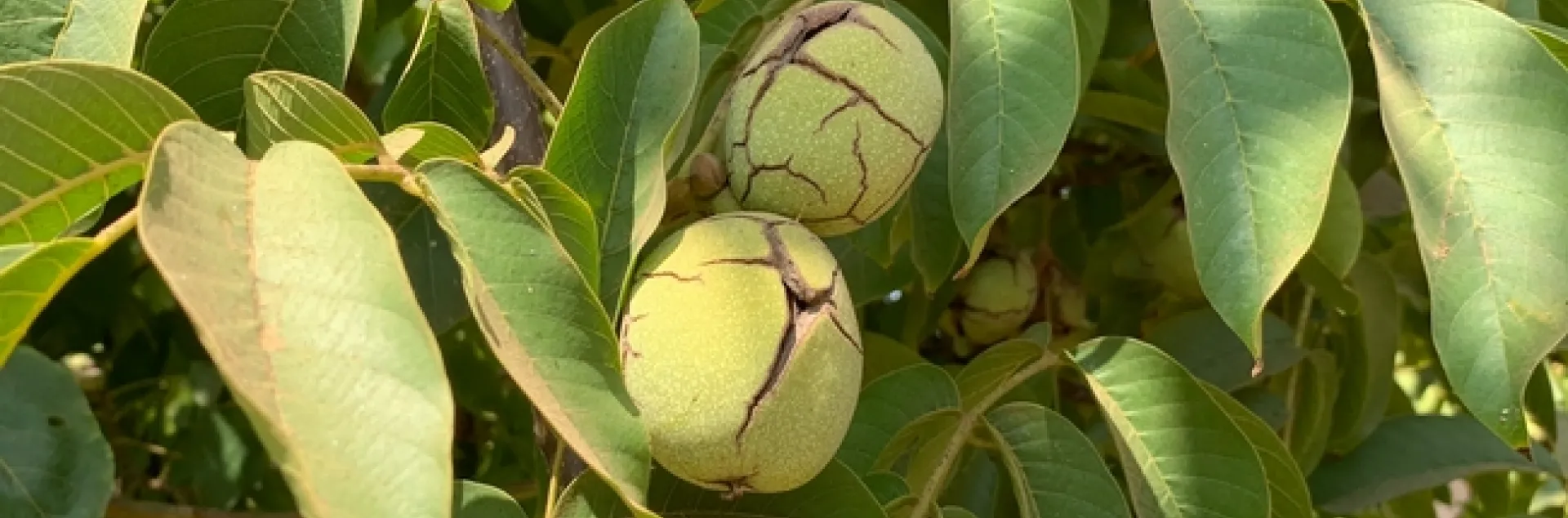 The new “UC Wolfskill” walnut has yield, quality and light color similar to Chandler, which is a late-harvesting walnut and the state's leading variety. UC Wolfskill was bred in 2003 from a cross of Chandler with the Solano walnut. UC Wolfskill combines the color and shell traits of Chandler with the earlier harvest date and kernel fill of Solano.