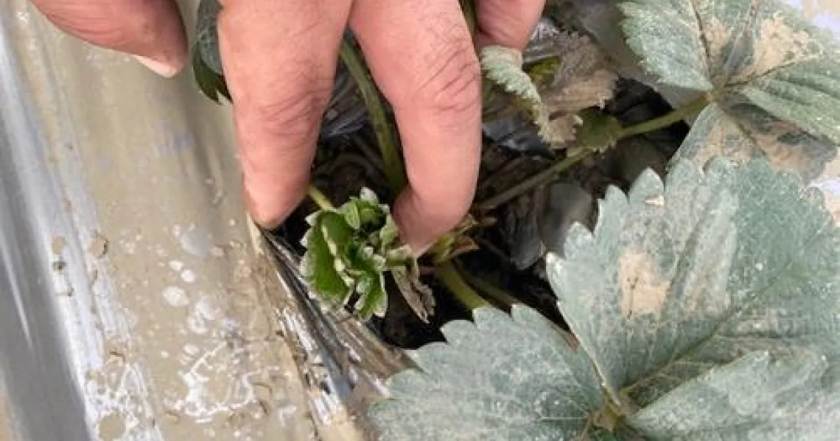 Es importante en este momento de pensar en nutrición de la planta. Es muy seguro que campos que aun recibieron fertilizante pre-plantar hayan perdido una buena proporción de esto durante las inundaciones y lluvias sin precedentes en los últimos meses. De tal manera que es posible que estemos equivocados con esto, los productores y sus managers como primer paso es tomar muestras de suelo y evaluar los niveles de nitrógeno mineralizado, sobre todo la cantidad de nitrato, lo cual es la forma de nitrógeno más asimilable por la planta de fresa. Cuando el suelo se vuelve oxigenado, nitrógeno en forma de nitrato también se mineraliza de la materia orgánica del suelo y enmiendas cualquieras que fueron incorporadas. Muestras del suelo se debe colectar desde 8 a 12 lugares del campo, de 8 a 12 pulgadas de hondo y a lado de la hilera. Una vez recolectada, estas muestras se junta y mezcla para hacer una muestra sola. Una parte de esta muestra se saca para análisis de las formas minerales de nitrógeno, quiere decir nitrato y amonio. Recomendamos usar el “nitrate quick test” (prueba rápida de nitrato para evaluar el estatus del nitrato en su suelo en una forma pronta). Se puede ver en este articulo como se hace esta prueba. Si intenta de mandar una muestra de suelo al laboratorio analítico, sugerimos mandarla sobre “hielo azul” (blue ice – hielo azul en forma gelatina) para prevenir la mineralización de nitrógeno sigue en tránsito. El laboratorio debe analizar la muestra para nitrato tanto amonio, las dos formas de nitrógeno existentes en el suelo.
