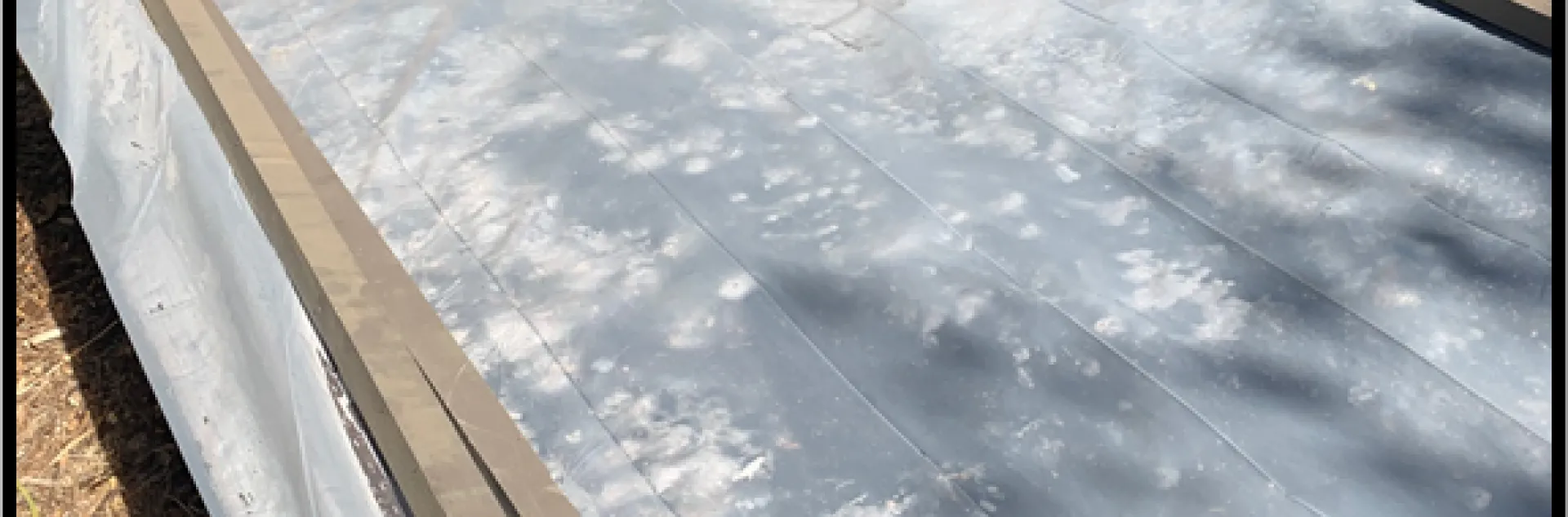 So it was time for action! I still had sweet potatoes and peppers growing in the bed where I pulled out the infested beans, so I have not attacked (pun intended) that bed yet. But the gourds were growing in a bed of their own, so after re-reading the UCANR Pest Notes on nematodes more carefully, I settled on solarization to try to destroy the nematodes in that location.