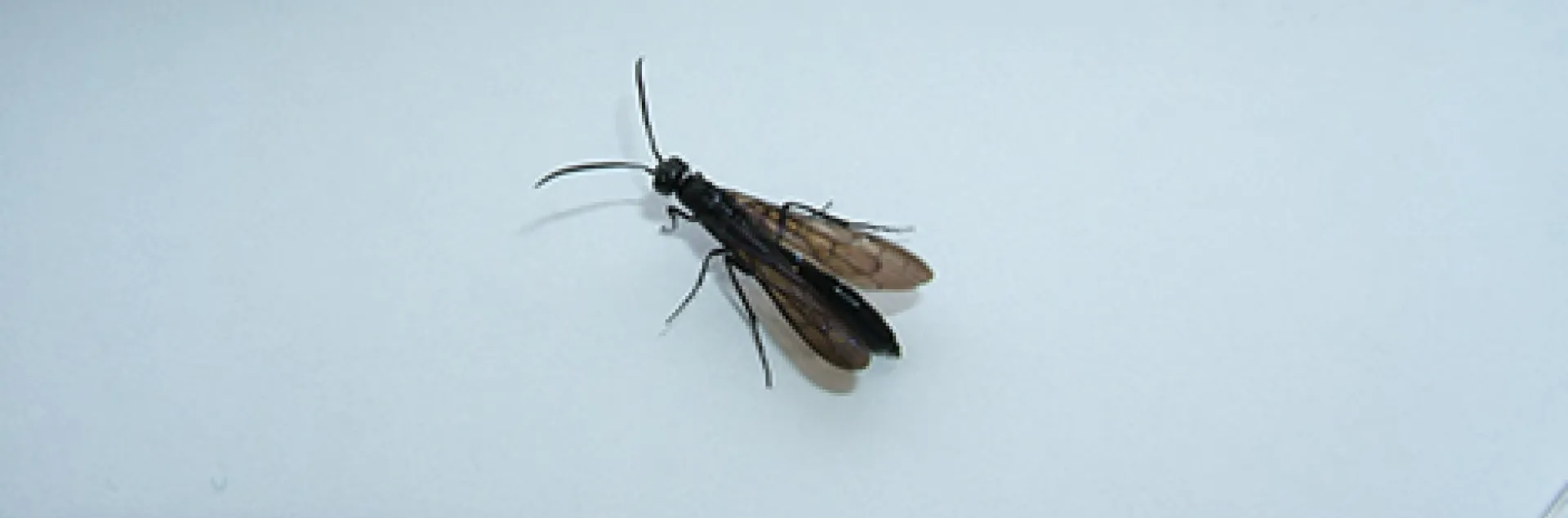 This is not an uncommon phenomenon to see in the rose garden and is usually caused by a pest, the raspberry horntail, Hartigia cressoni. Rose cane tips wilt, droop, discolor and die back. This problem can also be caused by other rose culture factors such as over-irrigation and lack of soil aeration, but a close look can identify if the problem is caused by the horntail. If you see a small, circular discoloration of the cane, especially where the second and third leaves from the tip attach to the cane, the raspberry horntail is the problem. This area is where female wasp inserts her egg to develop and where the larva feeds inside the cane. Canes may also become slightly swollen when a larva has fed inside. Cutting open the affected area will expose a tunnel with brown, granular frass (excrement) and sometimes an immature raspberry horntail or its cast skin if the wasp has left. The horntail can also be a pest of other cane-producing plants, such as blackberries and raspberries, hence the name.