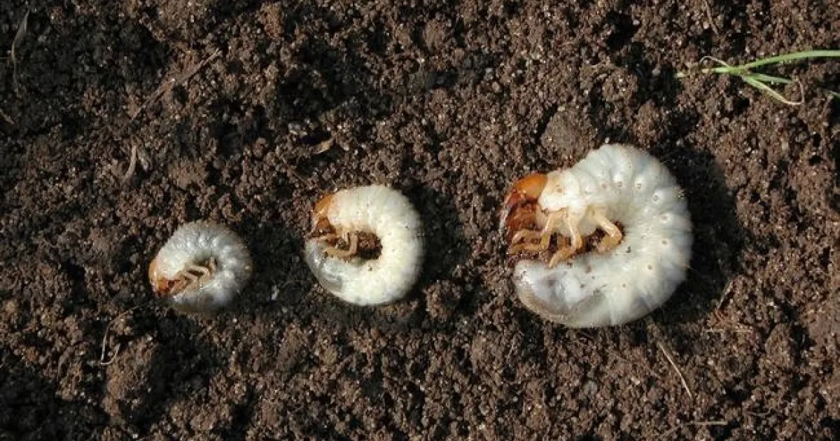In most cases, the presence of white grubs does not require treatment and populations of 6 or less per square foot can be tolerated. If you notice them in your garden beds, they can be hand-picked and killed. Some may choose to feed them to their backyard chickens or leave them out for the birds. When infestations of grass-feeding white grubs occur, the lawn may feel soft and spongy, sometimes able to be rolled back like carpet. You may also notice animals like raccoons and moles digging in your yard, looking to snack on some white grubs.