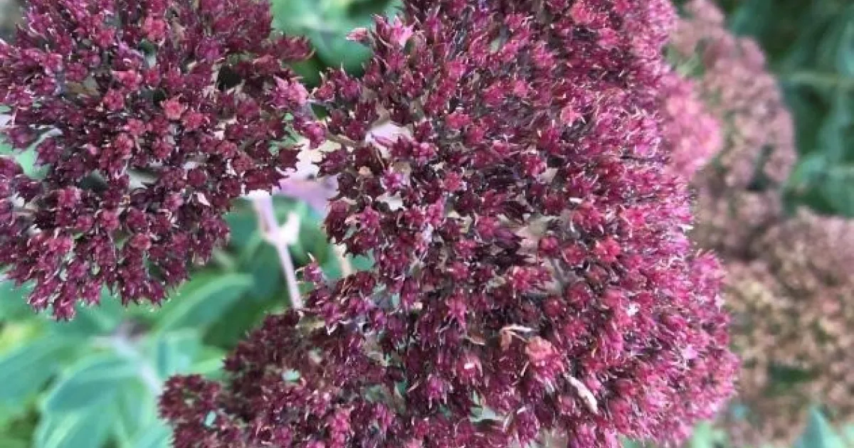PERENNIAL: Sedum: ‘Autumn Joy' (Hylotelephium telephium 'Herbstfreude') is a popular upright sedum. It is a hybrid plant created by crossing a species of sedum (Sedum telephium) with a species of ice plant (Hylotelephium spectabile). The plant features gray-green, rounded, succulent-like leaves. It ranges in height from 20 to 24 inches (18-24 inches wide) and blooms in late summer to fall with blooms of tiny, pink, star-shaped flowers that grow in clusters 3 to 6 inches across on top of the plant's stems. After bloom, the flowers gradually change in color to a deep rose and then rust color before they die when cold fall temperatures arrive. ‘Autumn Joy' is best planted in the spring after the threat of frost has passed but before the hot summer temperatures kick in. Full sun is best and water sparingly allowing soil to dry between watering. It is an easy-care plant that can be planted in borders, the rock garden, or in containers. It is pest, deer and rabbit resistant and does attract butterflies.