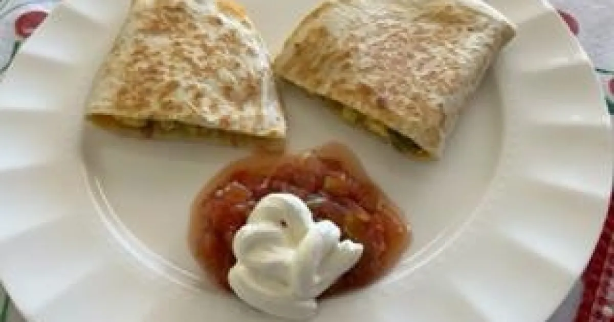 Heat a 10-inch skillet over medium-high heat. Add oil, then add zucchini, scallions, black pepper, oregano, and pepper flakes. Sauté until vegetables are tender, 3 to 4 minutes. Reduce heat to low, cover, and cook for 2 more minutes. Meanwhile, crack eggs into a bowl. Add water and whisk until well combined. Stir in Cheddar cheese and salt. Add egg mixture to the skillet and increase the heat to medium. Stir and scramble until eggs are soft-set, 3 to 5 minutes. Remove egg mixture to a plate and wipe the skillet clean with a paper towel. Spread ¼ of the egg mixture onto half of each tortilla. Fold tortillas in half. Place the clean skillet over medium-high heat. Add tortillas, two at a time, to the hot skillet and cook until crisp, about 1 minute per side. Serve with salsa, guacamole, or sour cream