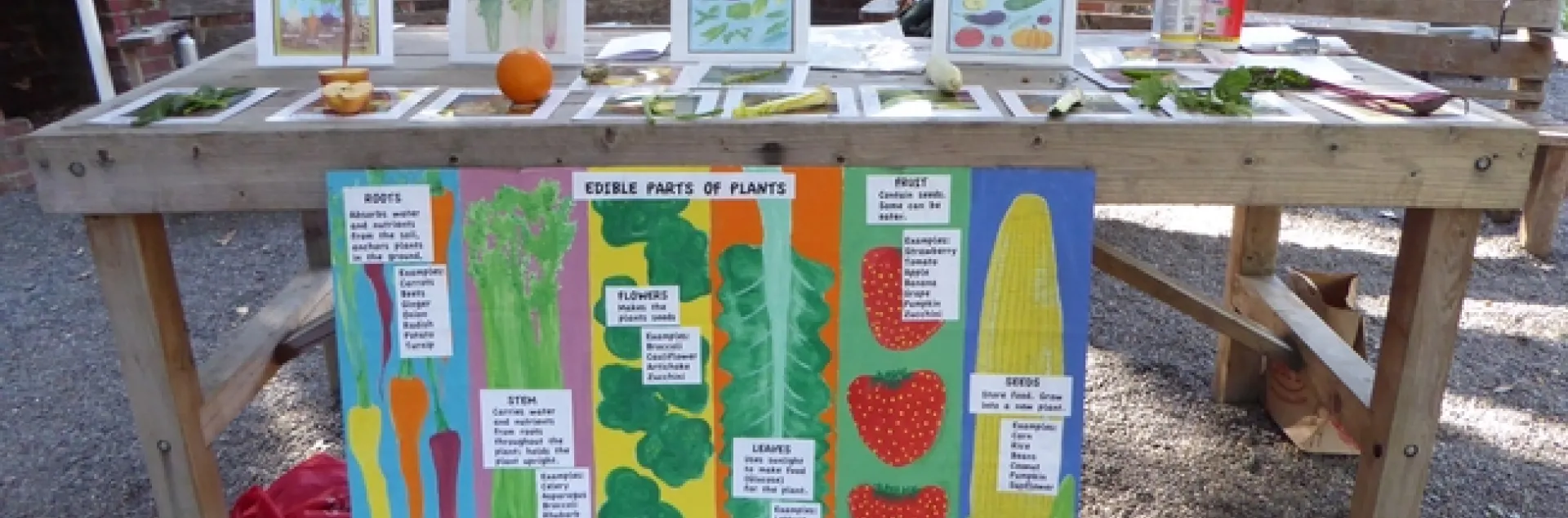 The half-day workshop rotates groups of students through six stations providing them with garden enhanced nutrition education, linking health with growing and harvesting foods they like to eat and are good for them. These include: