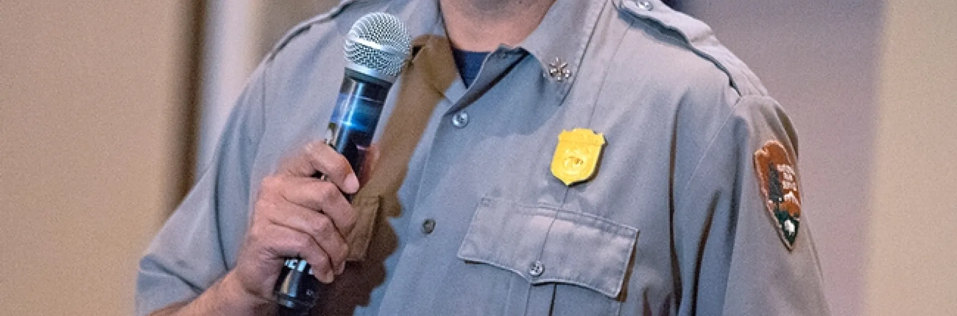 Tom Garcia, fire management officer with the Whiskeytown National Recreation Area, spoke at the UC ANR Fire Summit. (Photo: Evett Kilmartin)