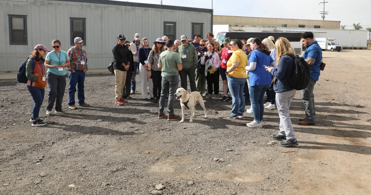JJ’s capabilities were recently on full display during the 2026 Vertebrate Pest Conference in Southern California. Conference attendees were invited to visit a working farm owned by Mellano & Company, a multigenerational flower-growing business in coastal San Diego County, to watch JJ in action.