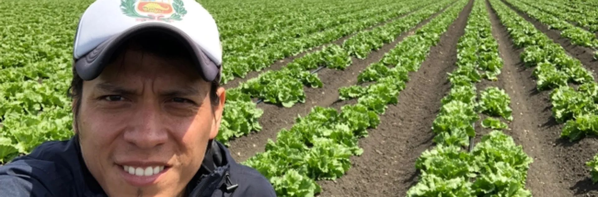 Alejandro Del Pozo-Valdivia, UC Cooperative Extension entomology advisor in Monterey, Santa Cruz and San Benito counties, in an iceberg lettuce field in Chualar, Calif.