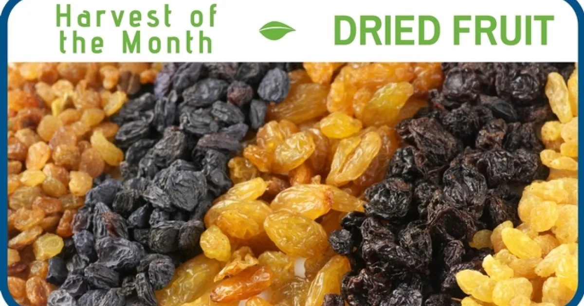 In February fresh produce is not as abundant as other months of the year, particularly fresh fruit. But this is an excellent time to embrace the many different types of dried fruits that are available throughout the whole year. California is the largest producer of raisins in the country, and many of the other fruits grown in the state are also available in dried forms, including apricots, cherries, plums/prunes, figs, pears, apples, and more. The process of drying fruits concentrates their nutrients, which makes them good sources of fiber and other vitamins or minerals, depending on the type of fruit. One caution, however, is that the natural sugars in fruits also become concentrated when dried. It's recommended to enjoy dried fruits in moderation, and to choose dried fruits that don't contain added sugar. One serving of dried fruit is 1/4 cup, or a small handful. See below for healthy ideas to add dried fruit to your recipes, or learn more about dried fruit at Harvest of the Month.