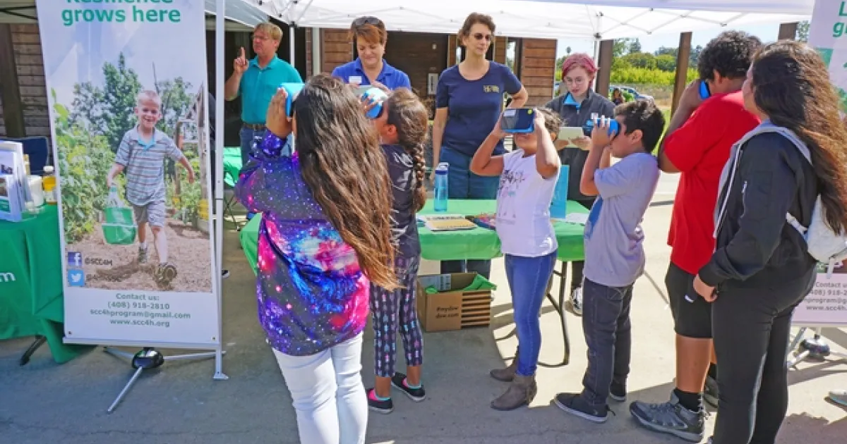 The UCCE 4-H program brought virtual reality goggles that allowed children to look in any direction for a view under the sea, complete with coral, fish and a sea turtle. Santa Clara County 4-H ambassador Alexa Russo used a tablet computer to interact with the children as they looked through the goggles, asking questions to engage them in the experience.